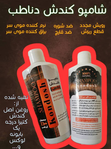 شامپوی قدرتمند کندش دناطب 🌺محصول دناطب🌺 ☝️پوست و مو مثل معده هرچی بهش برسه جذب میکنه 👌پس سعی کن بهترین تغذیه رو برای موی سرت درنظر بگیری 😍قویییترین شامپو گیاهی بدون موادشیمیایی ✔️✔️کیفیت بی نظیر این شامپو رو در هفته اول استفاده متوجه میشین👌👌 ♦️تقویت پیاز مو درشیردهی بارداری ویااسترس شغلی و..... 🔷رفع شپش وتخمآن ♦️رفع خارش سر 🔷رفع شوره ♦️رفع ریزش سکه ای 🔷رویش موی ریخته شده ♦️تقویت و پرپشتی مووریش وابرو 🔷رفع سفیدی مو باتداووم اثر ✔️✔️درمان ریزش های معمولی ویا مزمن بطور قطعی وتضمینی ✔️✔️کاملا گیاهی و ارگانیک (دست ساز) بدون مقایسه باهرشامپو وداروی که تاحالامصرف کرده ونتیجه نگرفتید این شامپو با اثر فوق قوی در رفع مشکلات موهایتان تضمین باجوابدهی صددرصد 🚫 قابل توجه با نوان 🚫 مراقب باشین کف حاصله زیاد به نواحی دیگردربدن نرسد زیرا کف حاصله از این شامپو در طولانی مدت باعث رشد مو در نواحیه دیگر می شود گیاهان درون این شامپو کاملا قابل رویت میباشد😍 یک شامپوی فوقالعاده عالی برای بانوان و آقایان