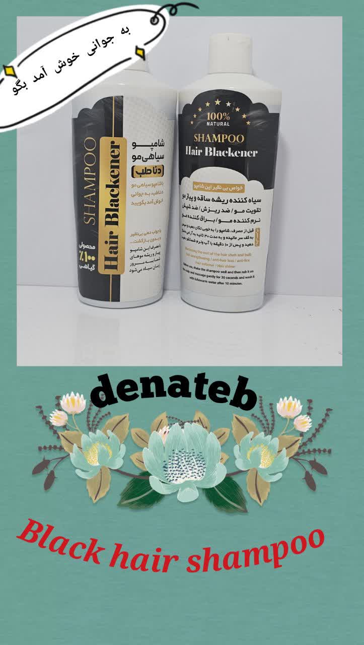 شامپو رنگ مو سیاهی مو دناطب 😍🔳 جوابدهی فوق العاده خواص بی نظیر این شامپو 👇👇👇👇 🔥 *سیاه کننده ریشه و ساقه مو* 🔥 *سیاه کننده پیاز مو* 🔥 *نرم کننده* 🔥 *تقویت مو* 🔥 *ضدشپش* روش مصرف: قبل از مصرف شامپو را تکان دهید و مقداری از شامپو را روی کف سر بمدت۳٠ ثانیه ماساژ دهید و پس از ۱٠دقیقه با اب ولرم شستشو دهید 🔚طول دوره درمان 6 ماه