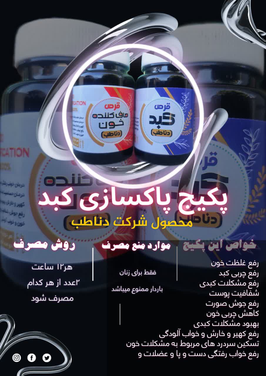 ♦️♦️قرص تیروئید دناطب♦️♦️ کسانی که درگیر تیروئید کم کار یا پرکارن میدونن هیچ درمانی در طب نوین برای درمان این بیماری وجود نداره و تا اخر عمر باید قرص مصرف کنن ولی دناطب که بارها ثابت کرد سررشته فوق العاده ای برای درمان تمام بیماریا داره این بار هم دست به کار شد 1️⃣خواص قرص تیروئید کم کار: 🟦افزایش ترشح هورمون تیروئید 🟦رفع سردی بدن 🟦جلوگیری از چاقی و کاهش وزن 🟦بهبود عملکرد معده 🟦هضم بهتر غذا 🟦رفع مشکلات ناشی از بلغم( خلط گلو، سفیدی مو، فراموشی و.....) 2️⃣خواص قرص تیروئید پرکار: 🟨کاهش و تنظیم ترشح هورمون تیروئید 🟨دفع حرارت کاذب بدن 🟨تعدیل وزن و کمک به تناسب اندام 🟨تقویت اعصاب 🟨درمان مشکلات ناشی از غلبه صفرا( ریزش مو، بی خوابی، خارش بدن، رفع زردی و.....) 🔚 روش مصرف: بعد از صبحانه ۲عدد و بعد از شام ۲عدد همراه اب ولرم میل شود پرهیزات نوشته شده روی قوطی رعایت گردد کپی